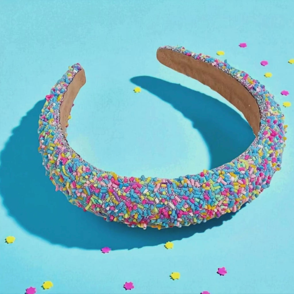 This Blue Sprinkle Statement Headband is a literal sugar rush for your style. Covered in hundreds of candy-inspired beads and sparkly pastel sprinkles, it’s the perfect blend of bold and playful. Whether you’re heading to a birthday brunch, festival, or just living your best life — this showstopper is guaranteed to turn heads.
