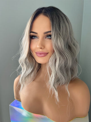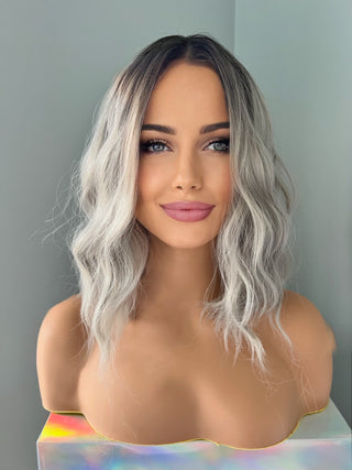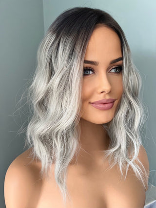 This icy silver wig is pure main character energy. The soft, dimensional ombré transitions from a deep root to a cool metallic silver, giving you that high-end, futuristic vibe—without the salon commitment. With gentle waves and a chic bob length, it's equal parts edgy and effortless.
