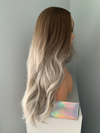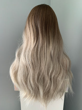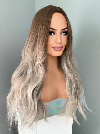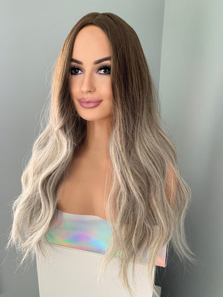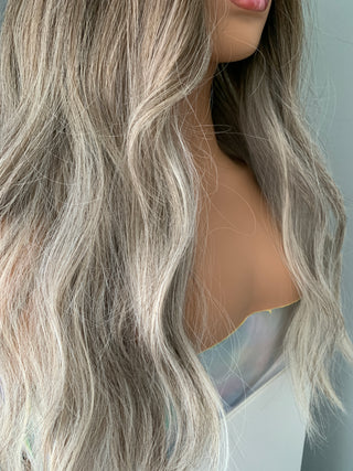 This soft, rooted ash silver wig gives you that dreamy salon-fresh vibe—without the salon. The loose waves add effortless movement, while the centre part and blended tones create a polished, natural look. Whether you're dressing up or keeping it casual, this wig instantly elevates your everyday style with zero effort.