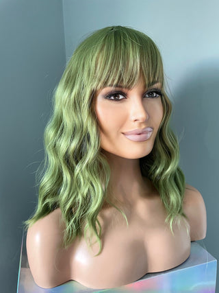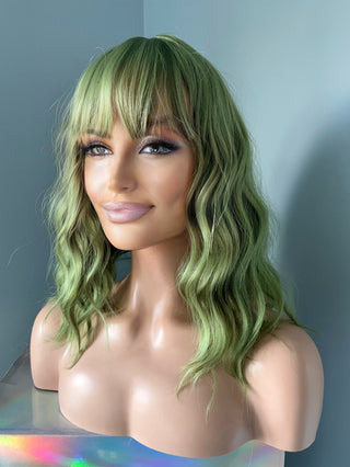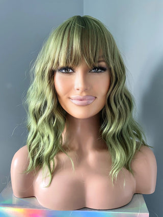 Add a playful twist to your look with this soft olive green wig. Featuring relaxed waves and wispy bangs, this shoulder-length pastel beauty is perfect for everyday boldness or standout styling. Lightweight and beginner-friendly, it’s an easy way to change up your vibe—no dye required.