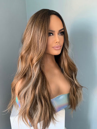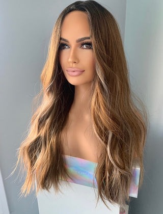 "Natalie" - Highlighted Brown Beach Wave Wig
